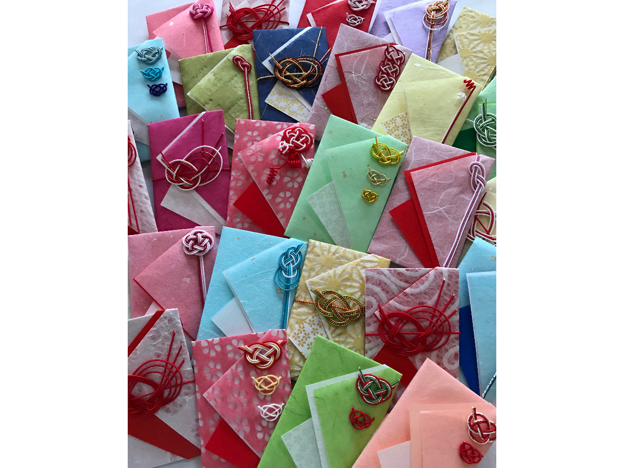 水引をアレンジした「略式紙幣包み、ぽち袋、あわじ結び、梅結び」など、