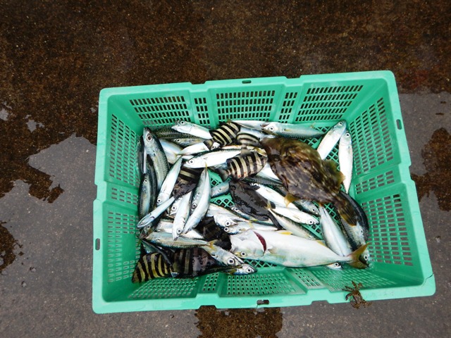 9月の団体様の釣果です。サバ、イシダイ幼魚の他、カワハギ、カンパチ幼魚(?)なども釣れました。