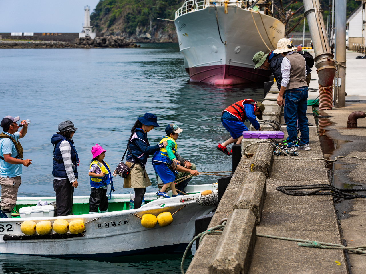 ファミリー、グループなどのんびりと海釣りを楽しめます。岸壁釣りとは一味違った魅力です。