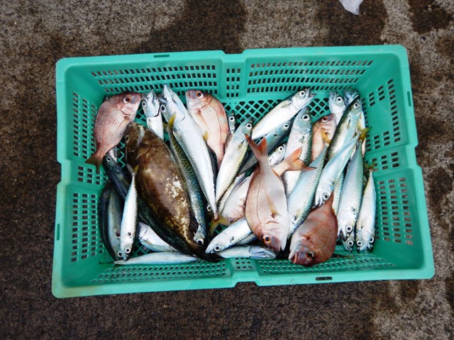 9月の団体様の釣果です。サバがたくさん、マダイ幼魚や、アイゴなども釣れました!!