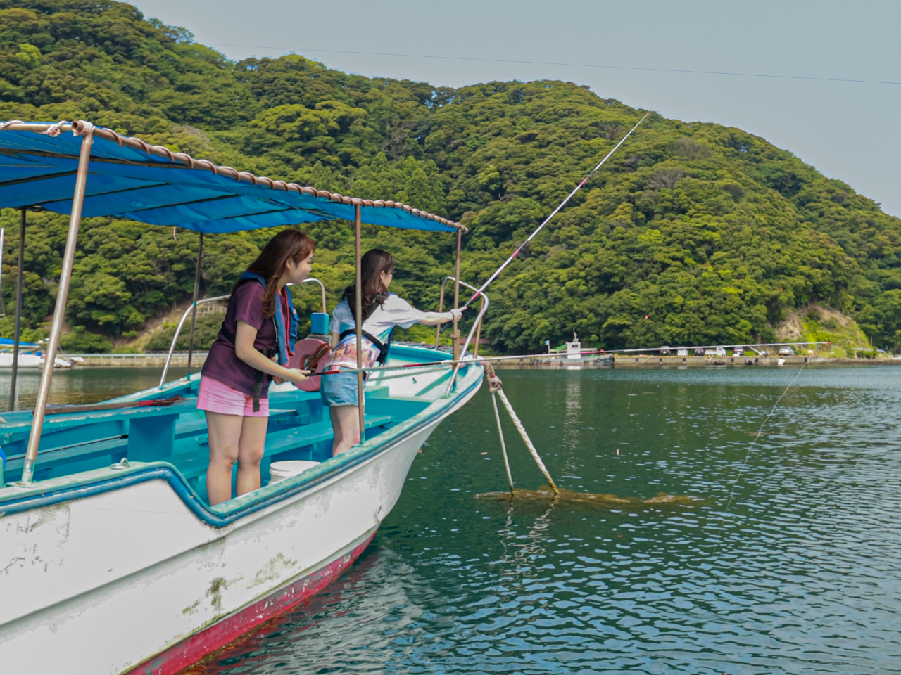 安良里港に係留してある係留船で自然のお魚を釣ってみよう!!