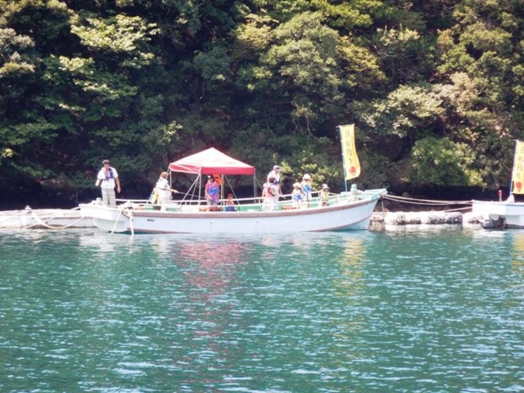 一年を通じて穏やかな安良里港内に2隻の係留船があります。係留船までは漁協前岸壁から渡船を致します。(約3分)