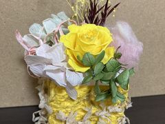 ひとりだったので、プリザーブドフラワーについて教えてもらったり、気さくにお話できて楽しいひとときでした。花をどのように配置するか、イメージしながら創作するのがおもしろかったです→生け花みたいな感じで( ^ω^ )