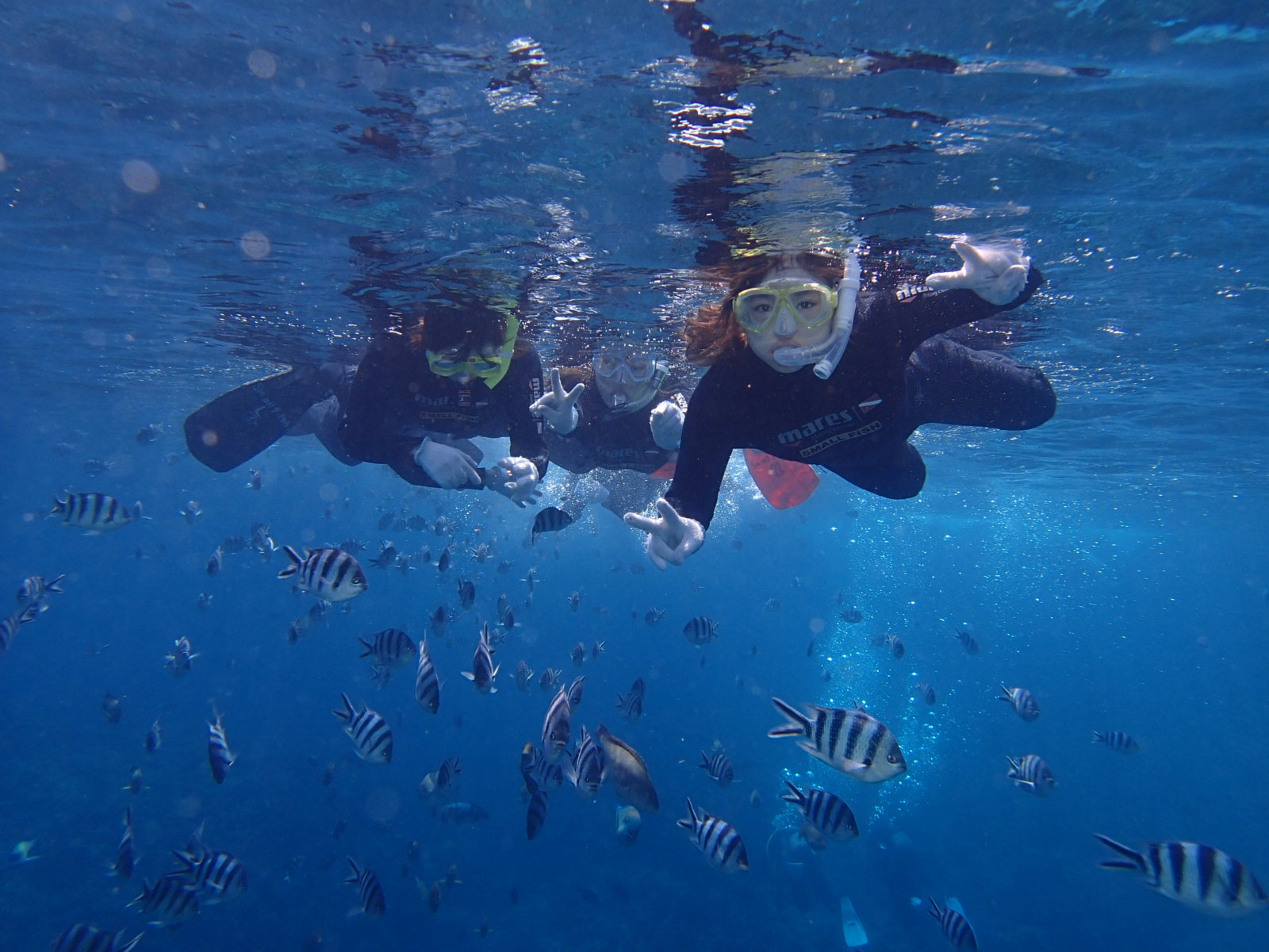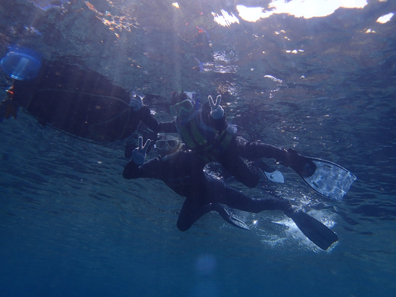 泳ぎが苦手な人、小さいお子様連れのご家族もご安心ください。絶対に沈まないようお客様一人一人に専用のライフジャケットとウエットスーツをご用意しております。また、スタッフが持っていく大きな浮き輪に捕まってシュノーケリングを開催することも可能です。スタッフが同行しますので、フルサポートします!