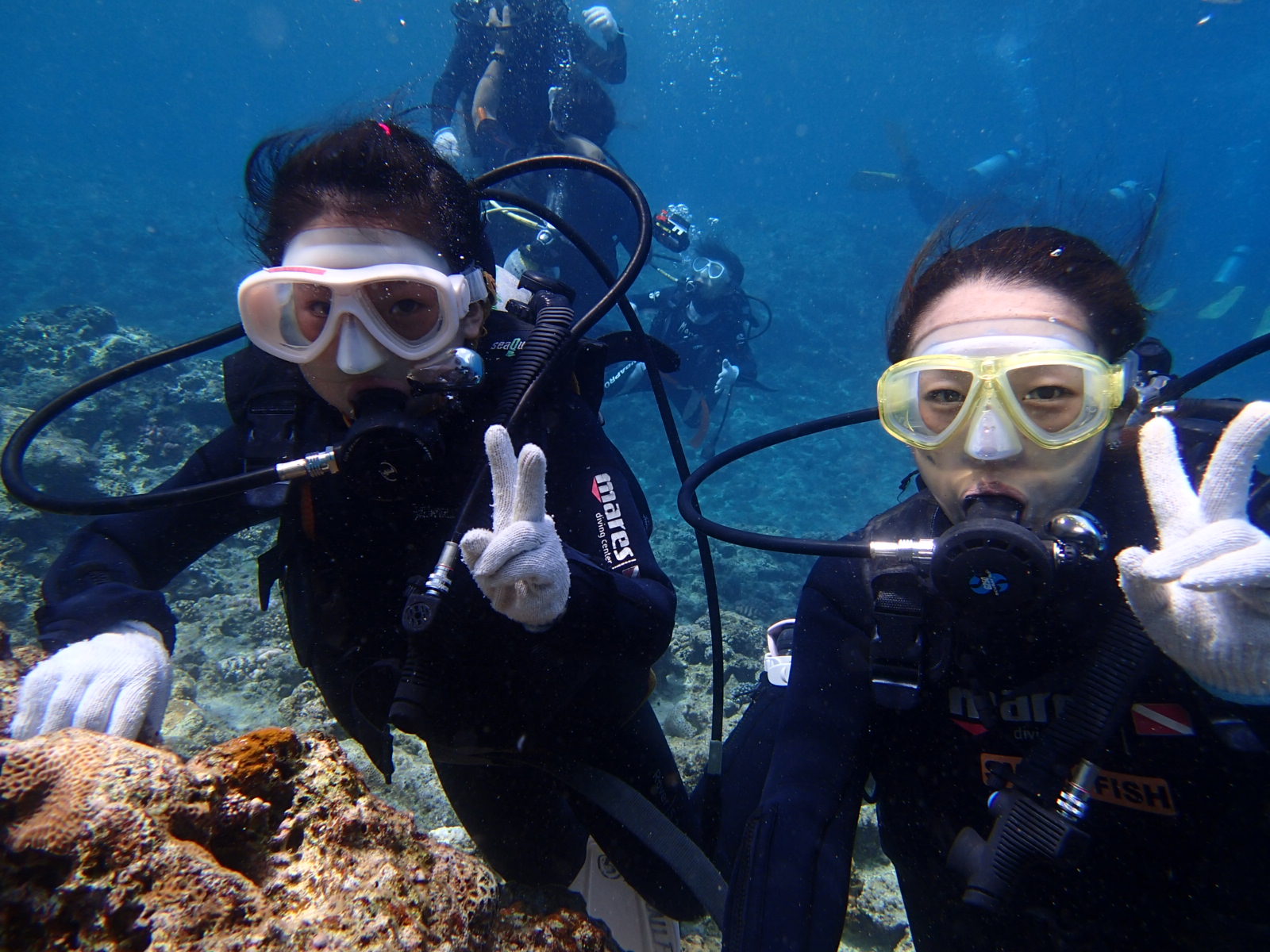初心者専門店の当店では、「しっかり」・「丁寧」「笑顔」をモットーに、たっぷり楽しんでいただけるプランをご用意しております!お客様一人一人のペースに合わせて開催するので、ダイビング経験がない方も、泳ぎが苦手な方も、小さなお子様でもご参加できます。