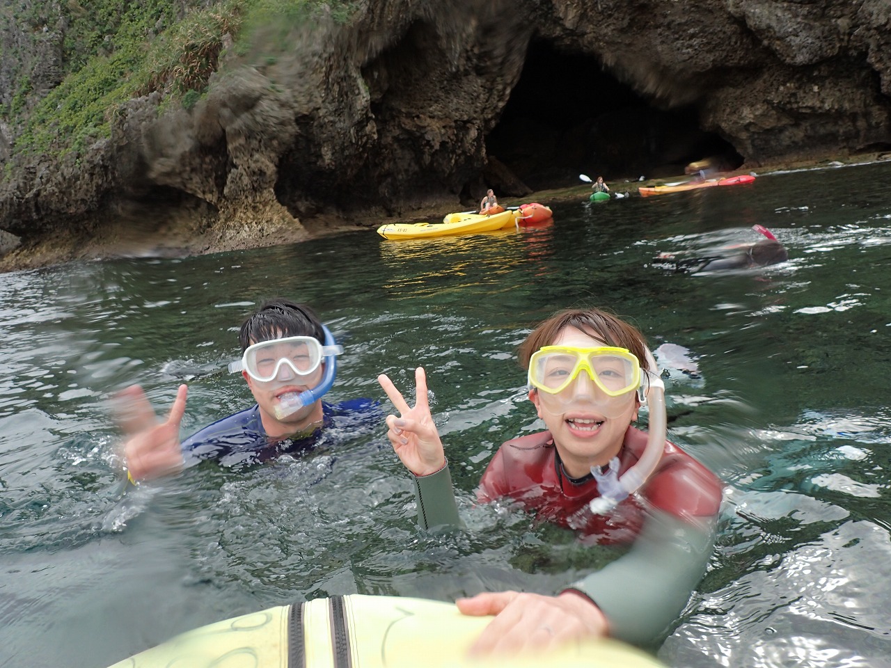 【グループ割引4名様〜】当店人気NO.1!!シーカヤックで行く青の洞窟探検シュノーケル♪安心のショップ集合!沖縄本島・恩納村エリア♪/≪ファミリー・カップル・女性・オススメ≫