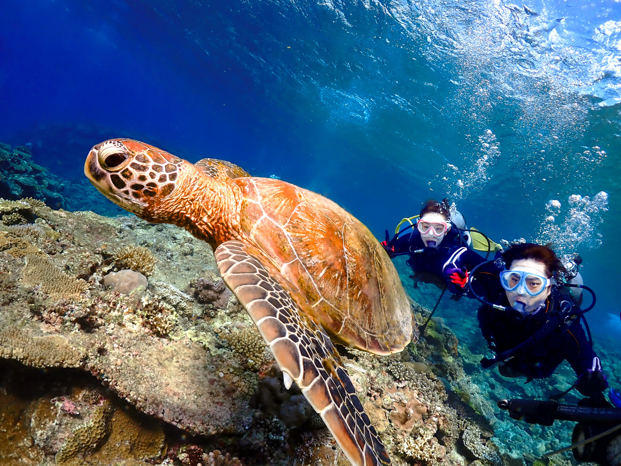 ウミガメ探索コース♪【本島中部 宜野湾発/慶良間ボート体験ダイビング・2ダイブ】快適な自社船開催☆写真無料☆送迎OK☆3本目OK☆お一人様OK