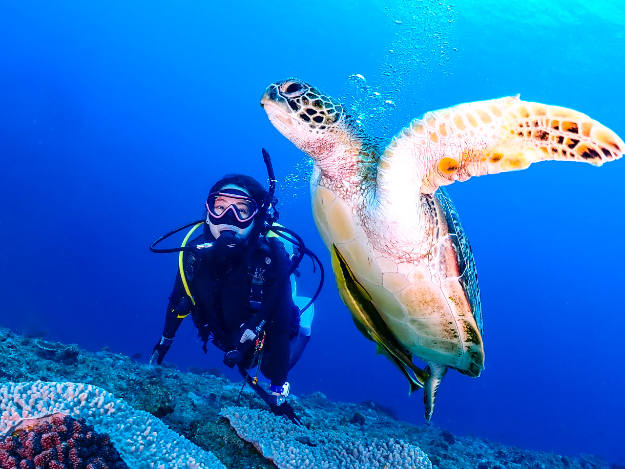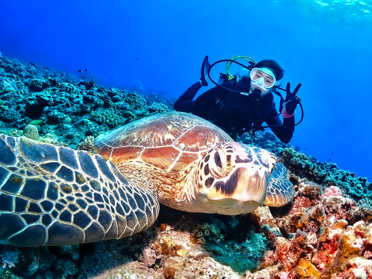 ■慶良間諸島のウミガメに遭遇しやすいポイントでダイビング