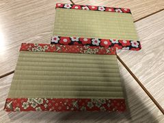 夫婦でお邪魔しました。予約時間よりも30分も早く着いてしまって、どこで時間潰そうか考えていたのですが、すぐ体験させてくださり助かりました。材料を楽しくワイワイ言いながら選んでその後は2人とも真剣に熱中しちゃいました(笑)先生がつきっきりで教えてくださり、仕上がりが綺麗になるような細かいアドバイスもしてくださるので出来上がりもバッチリでした。あんまり楽しくて、もう一ついいです?ってティーマットまで作ってしまいました。予定してなかったのに快くまたお相手していただきありがとうございました。近くのカフェもオススメで教えていただいたり、とても親切にしていただけて楽しい時間を過ごすことができました。お友達にも「タタミ体験〜?どこで探してきたの?面白そう!」って好評でした。すっごくオススメです。