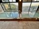 テラスにぬるめとあつめのお湯の足湯、床に埋め込みに金魚やメダカのいる水槽があってくつろげます。