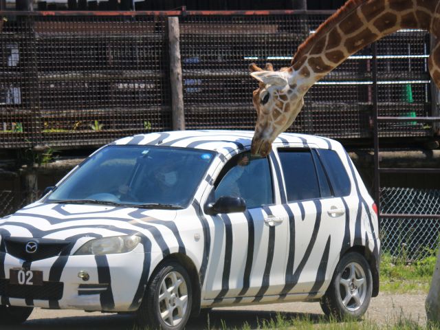 多くの動物たちが暮らす、サファリゾーンに車で突入!