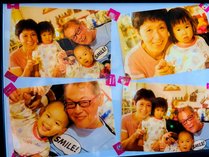 コラージュのお写真に心を響いてくださり、お父様お母様、若夫婦様、どちらもとても喜んでくださいます。やっぱり3世代みんな一緒の写真は記念になりますよね〜