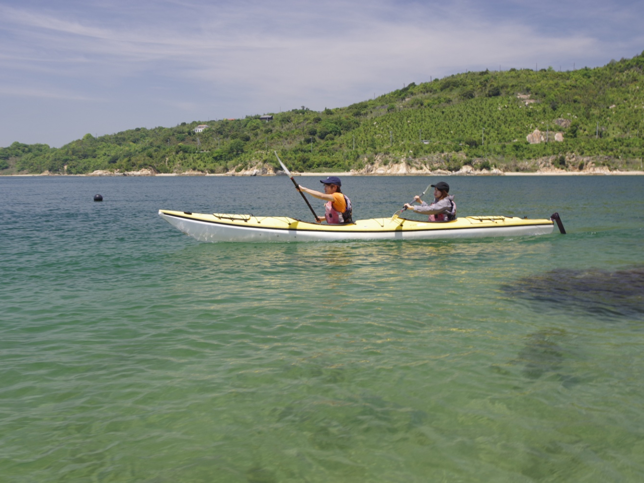 【ガイド付き2人乗りシーカヤックツアー】ハーフデイ・トレイル(3時間)軽食&ドリンク付き\\岡山の離島リゾートで動と静の水上冒険を楽しもう♪//【高校生以上】【一眼レフ撮影写真無料サービス】