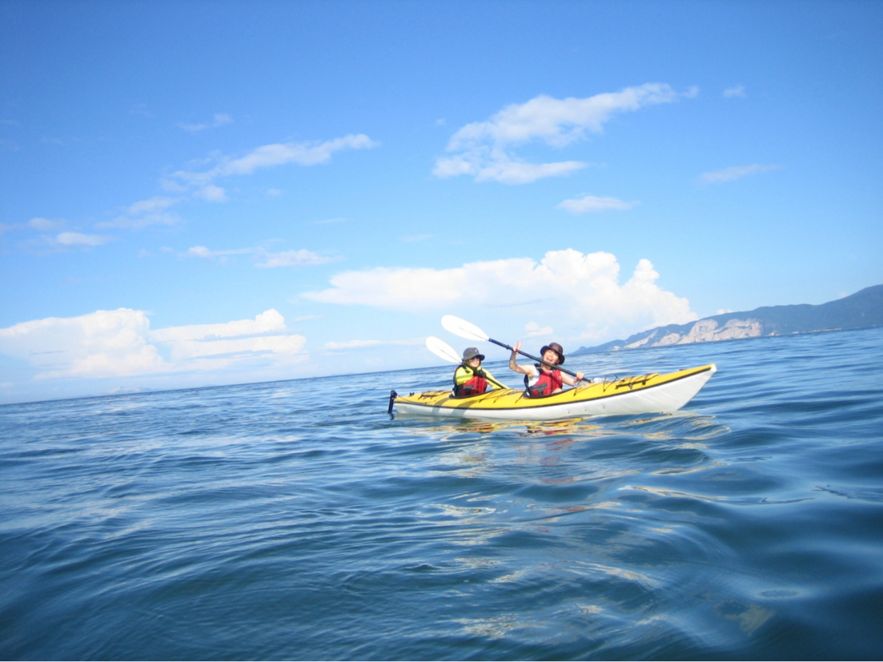 息子と二人、久々のカヤッキング。台風の進路を気にしながらの当日…。見事に快晴!水面を渡る風が心地よく癒されました。ランチはガイドさん手作り!手際よく作ってくれました。とても美味しくて大満足。大潮で島々が浜でつながる(ビーナスライン?)も見れました。がしかし!台風の影響か?風が強く波も有りちょっと良い運動で(笑)帰りの運転、腕がダルかったです。