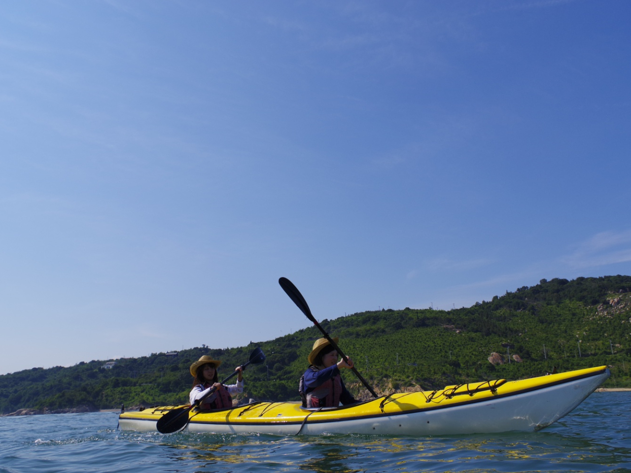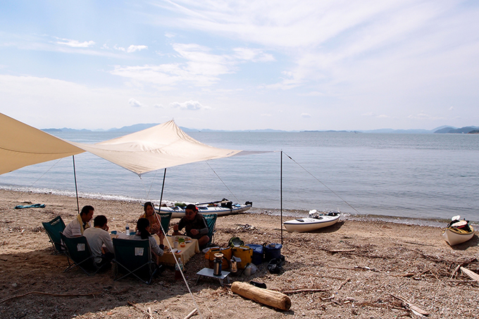 【ガイド付き2人乗りシーカヤックツアー】ワンデイ・トレイル(6時間)浜辺食堂アウトドアランチ&ドリンク付き\\岡山の離島リゾートで水上冒険を楽しもう♪//【高校生以上】【一眼レフ撮影写真無料サービス】
