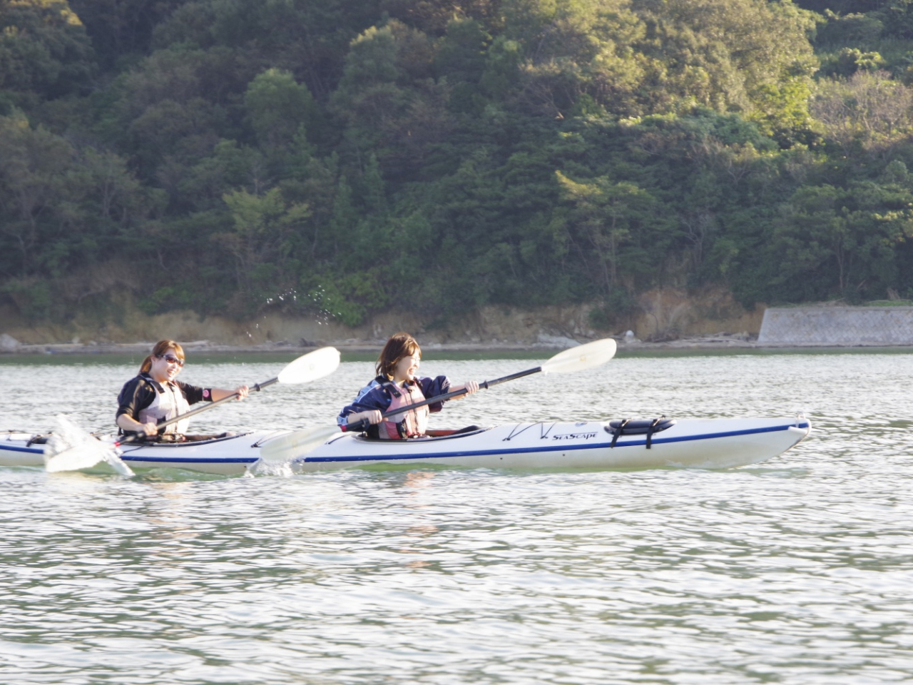 あり(プラン料金込) シーカヤックを漕ぎすすむ風景などを一眼レフで撮影した画像を無料でお渡ししています。 |