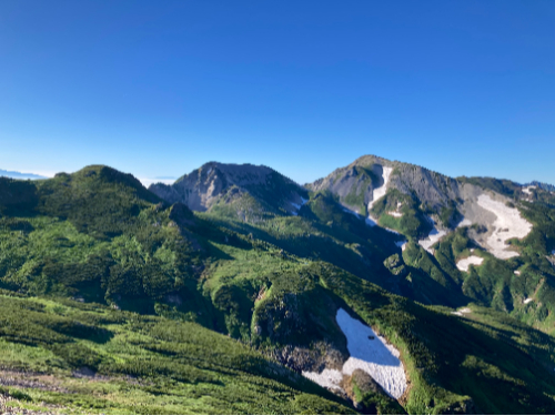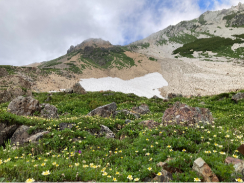 大雪渓や高山植物,山の中の温泉アリといった白馬を一気に満喫できるルートです。