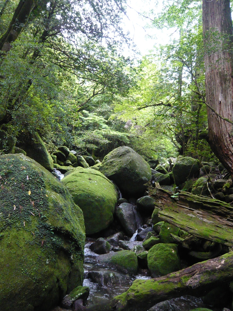 屋久島の豊富な雨量によって作られた原生林や、白谷川の清流など、