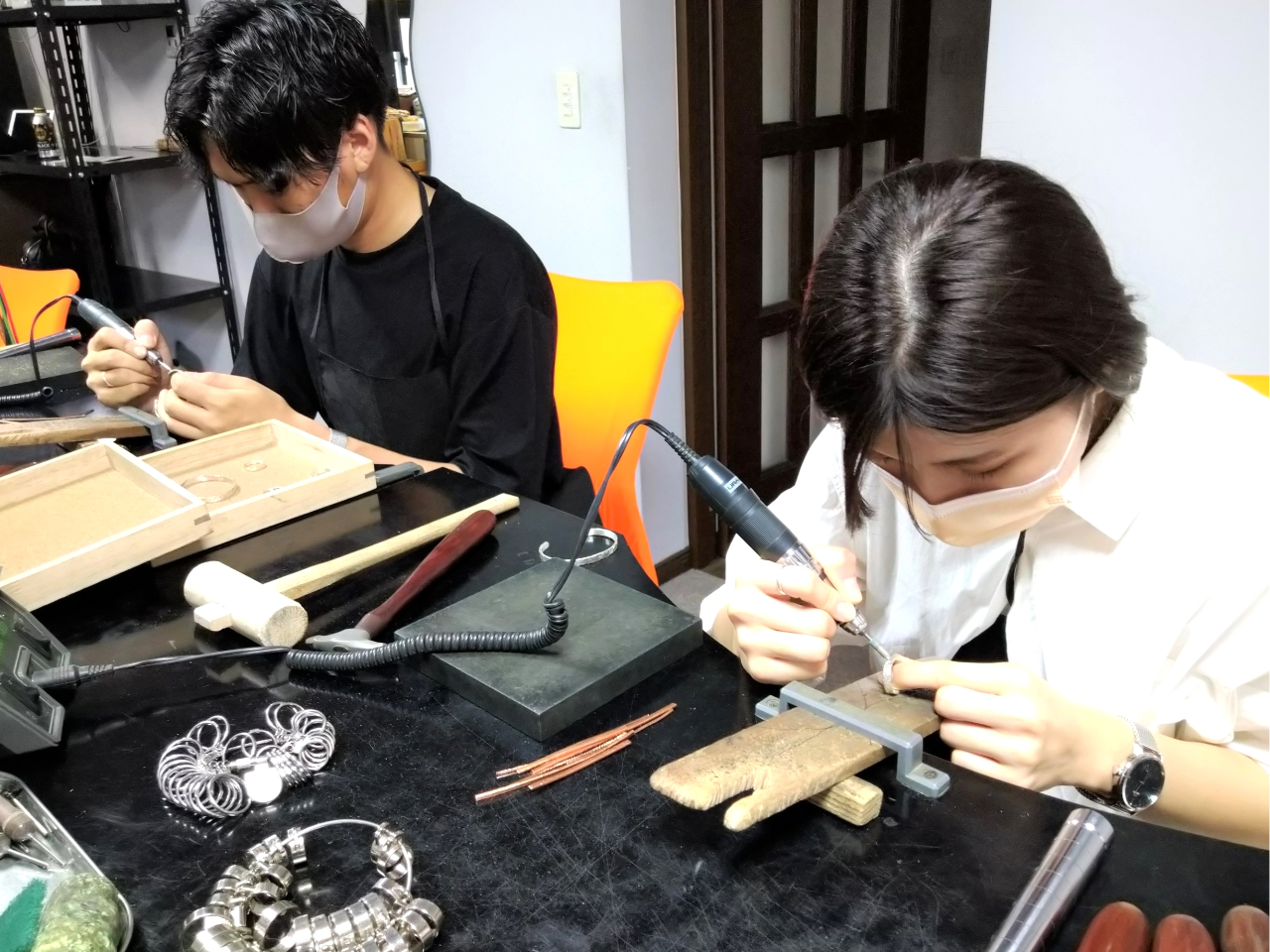 槌目リングコース 湘南 彫金体験 シルバーリング リング作り ペアリング