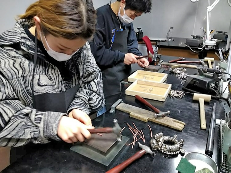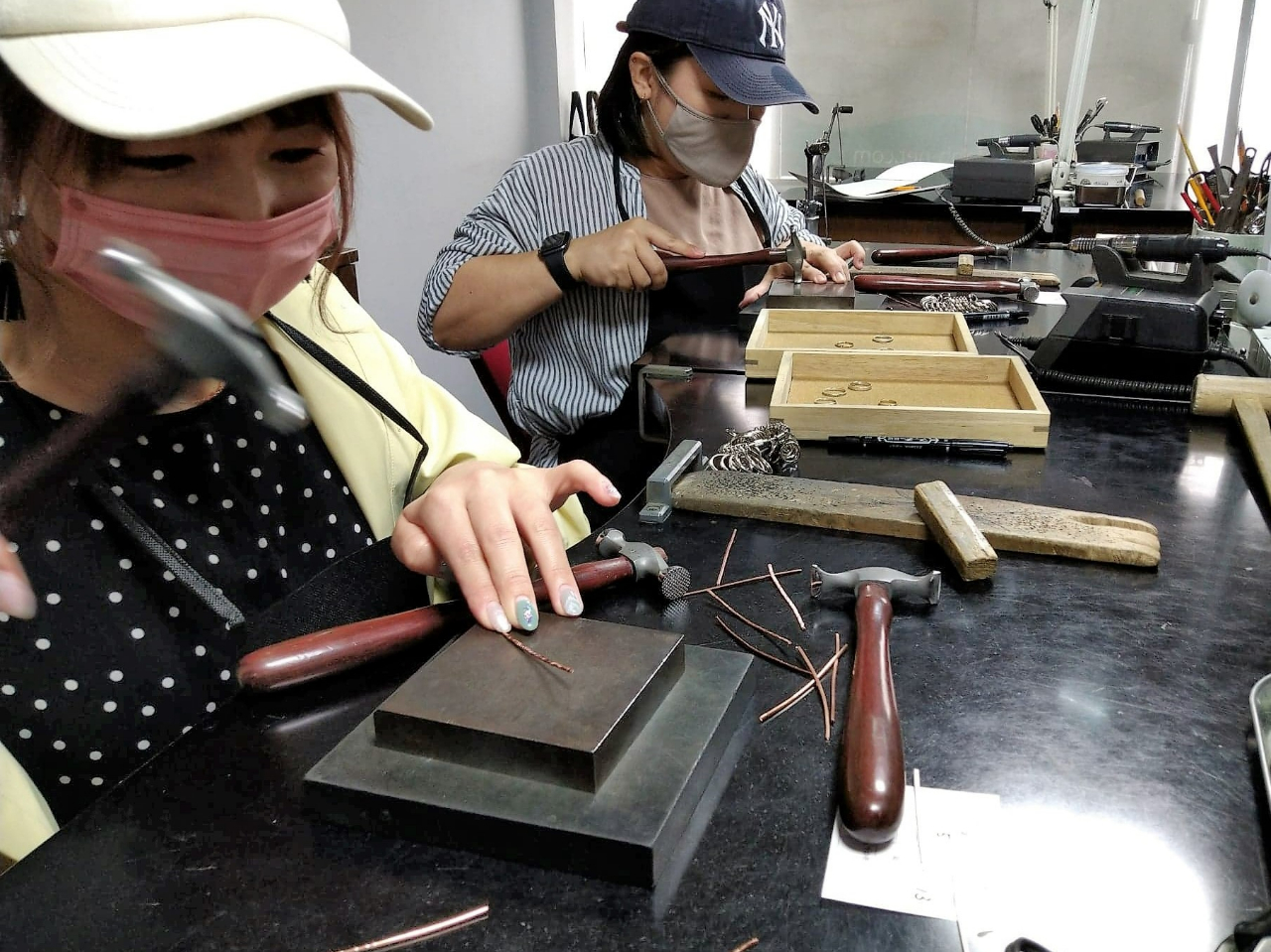 テクスチャーリング2本制作コース 湘南 彫金体験 リング作り オリジナルリング