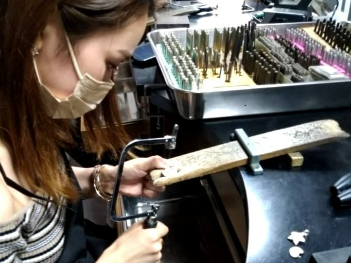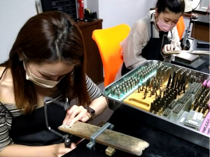 1. タガネ(模様・アルファベット・数字)を選び、銅で打刻練習