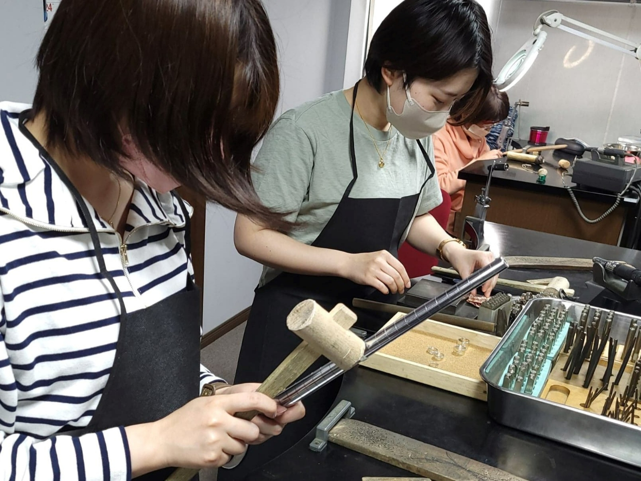 槌目リングコース 湘南 彫金体験 シルバーリング リング作り ペアリング