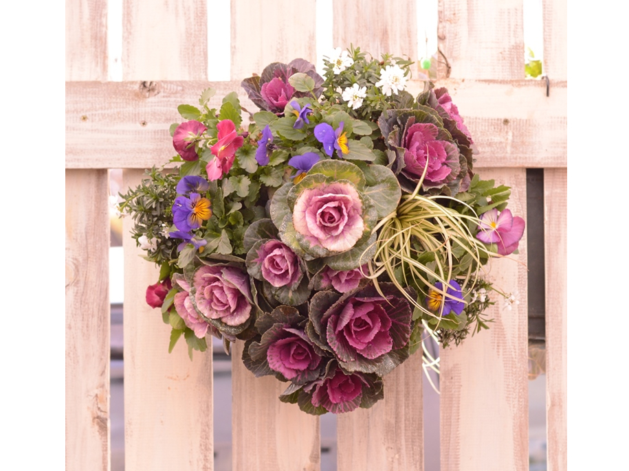 FloraRIEの季節のハンギングレッスンです。3-7月と10-12月が花苗が多いのでお勧めです。