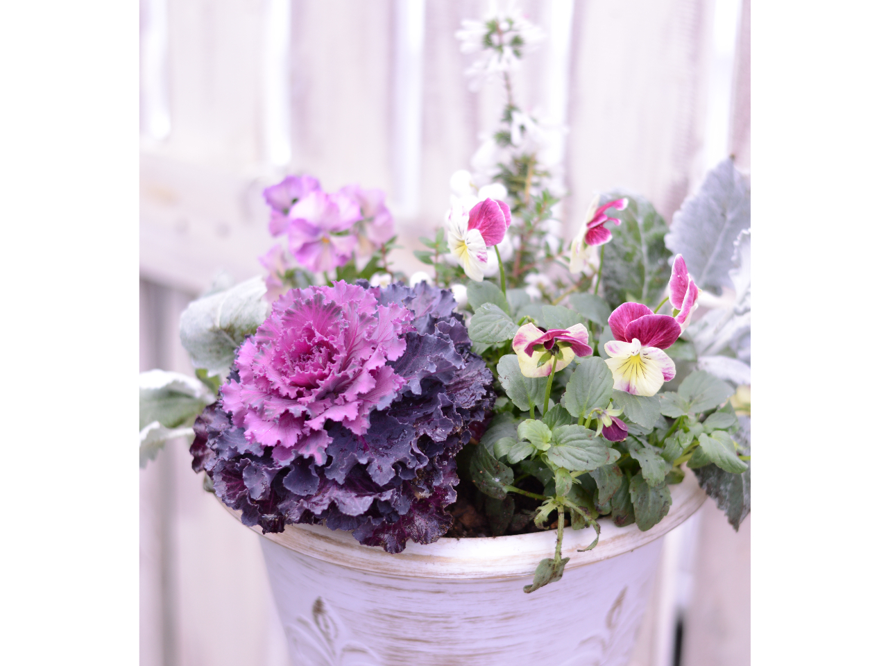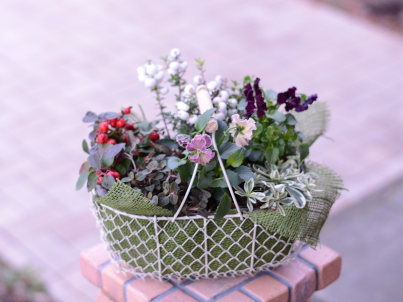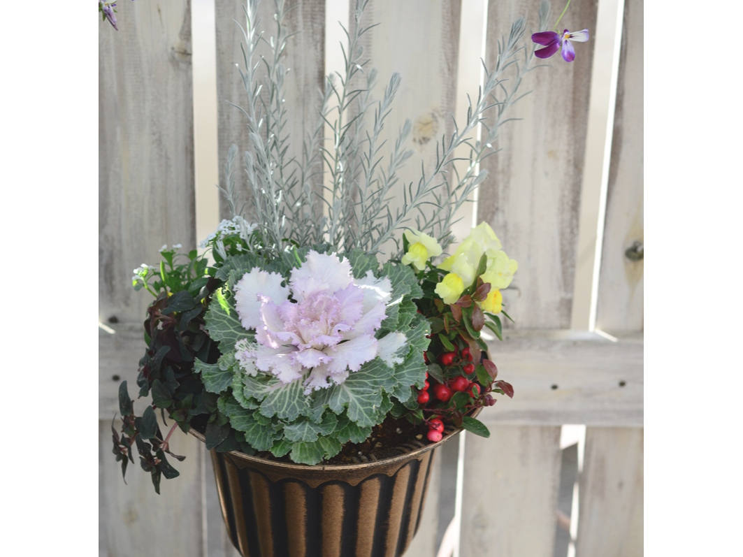 季節の草花をお好きな器に寄せ植えしていただきます。3-7月と10-12月が花苗が多いのでお勧めです。