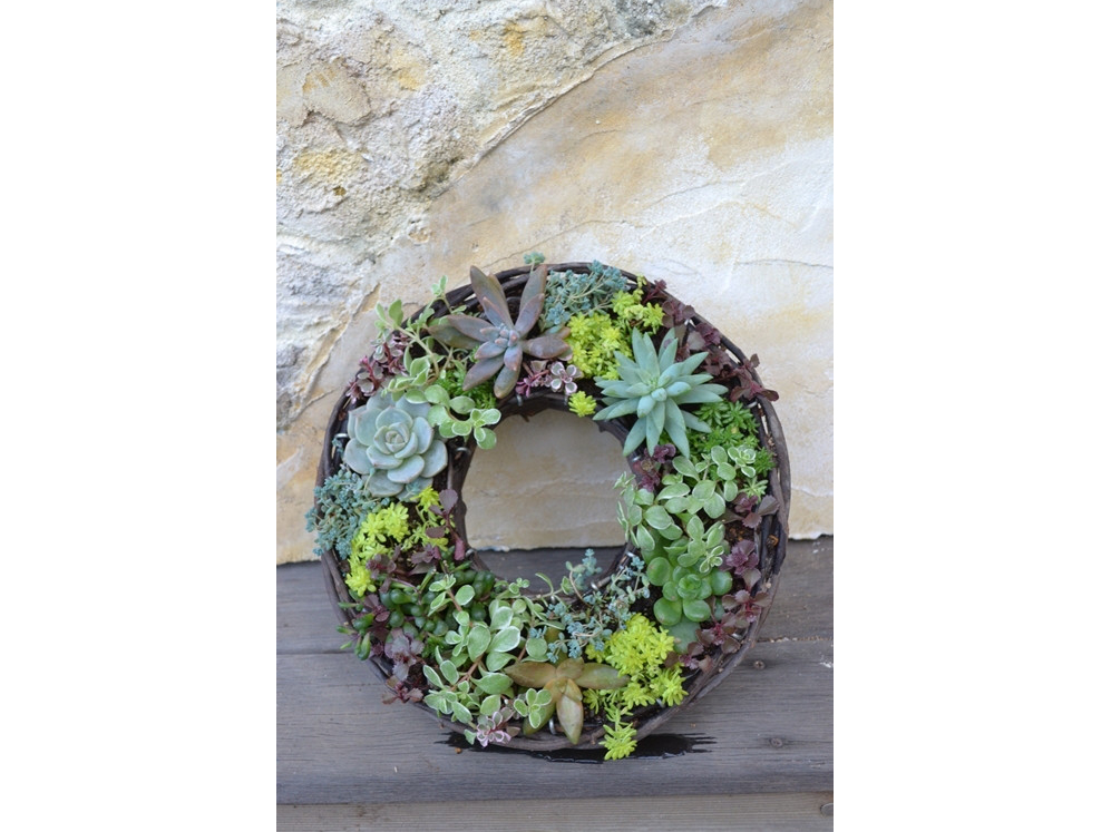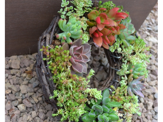 zoomによるリアルタイムオンラインレッスンで多肉植物リースの寄せ植え製作体験ができます