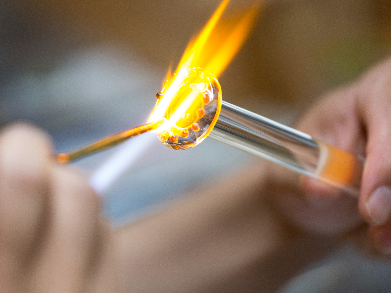 一点物のあなただけの作品作りにチャレンジ!手作り好きな色を選んで、酸素バーナーでガラスを溶かして作る本格的なガラス細工体験です。ペンダントトップ又はヘアゴムをお作り頂きます。