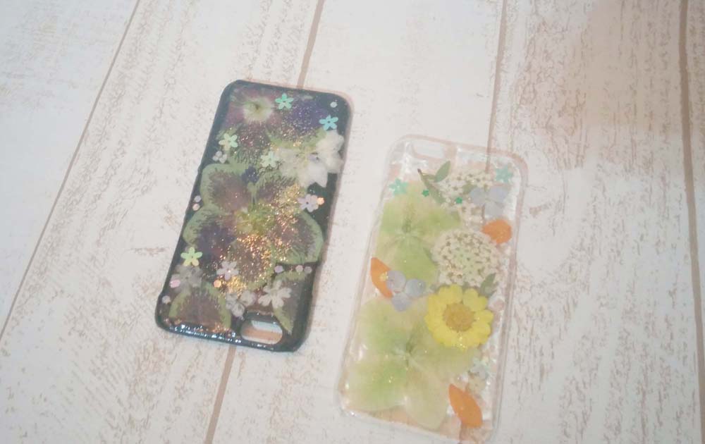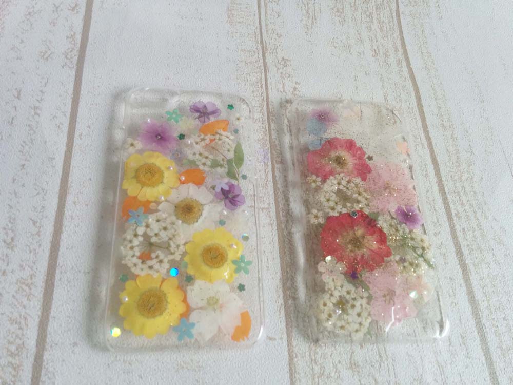 可愛いスマホケースが出来ました スマホケースづくりでは、可愛い押し花が用意されていて
