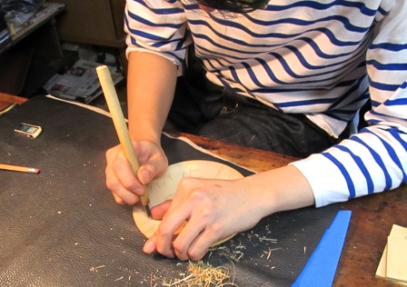彫終わりましたら、お皿の裏側にサインを彫込み、完成です!