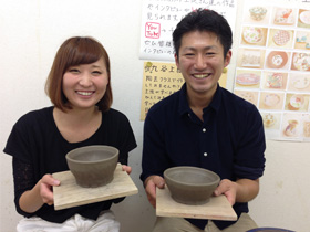お茶碗と湯呑みが一度に作れる千秋工房一番人気のコースです。