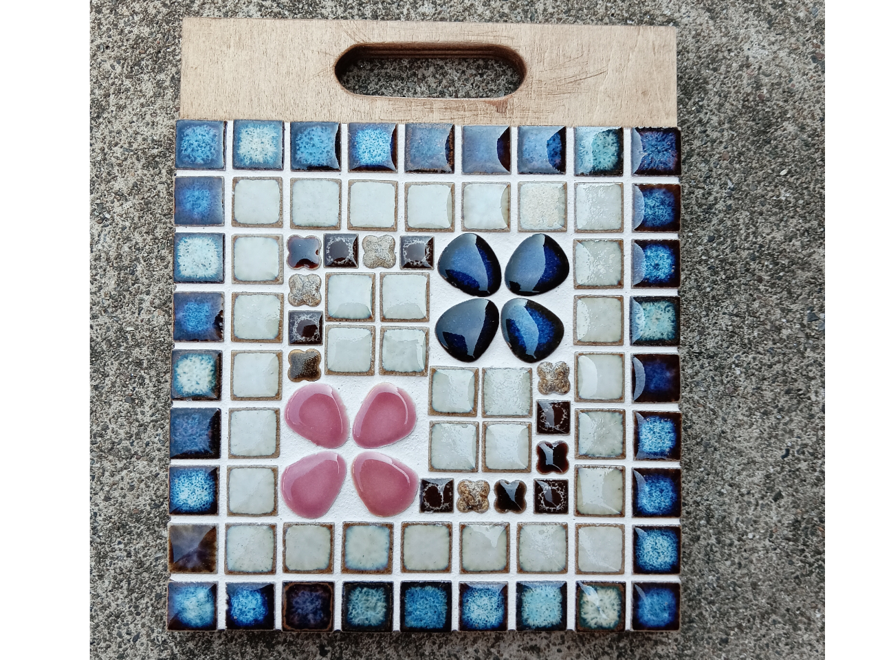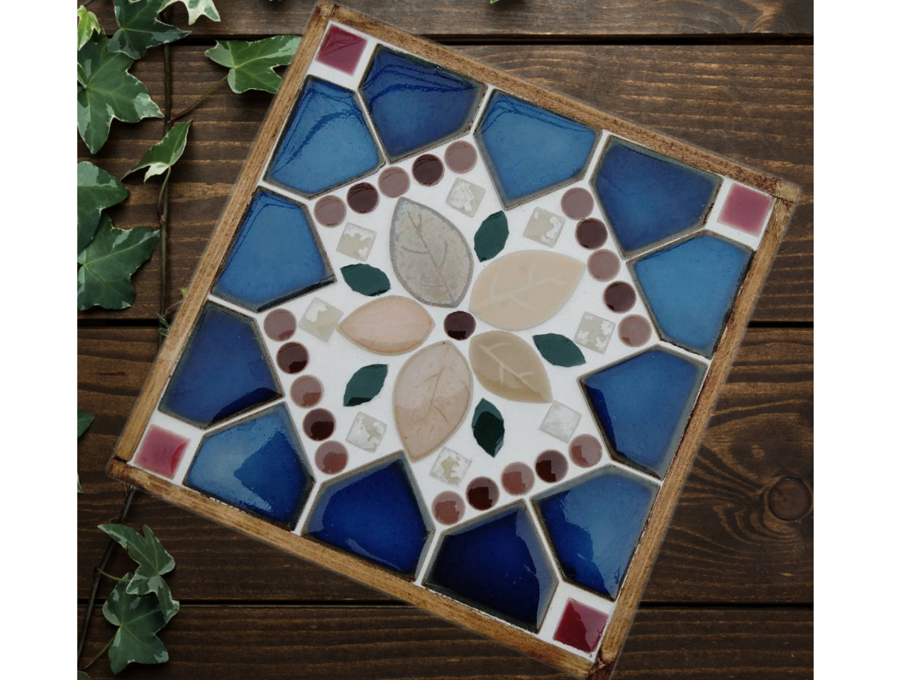 今人気のアンティークな色合いのタイルを使って、おしゃれなモザイク鍋敷きを作ります。