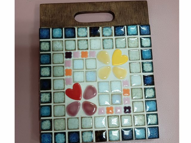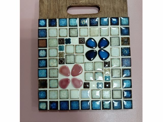 今人気のアンティークな色合いのタイルを使って、おしゃれなモザイク鍋敷きを作ります。