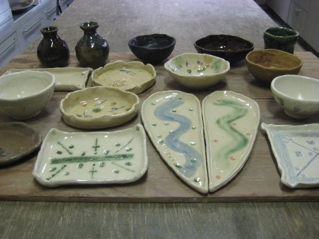 釉薬はオリジナル調合、手びねり板づくりは各自白土、赤土のお好きな方を選べます。(団体は除く)仕上がりは様々!選ぶところから楽しめます♪