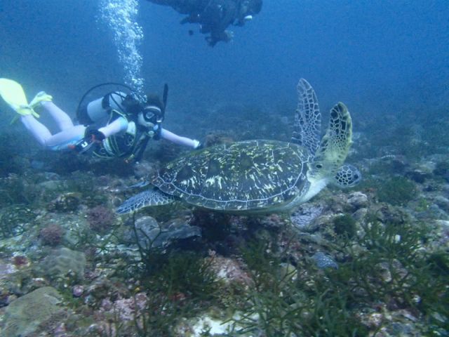 ダイビングが初めてという方でも、足の着くところで呼吸の練習から始めるので安心です。