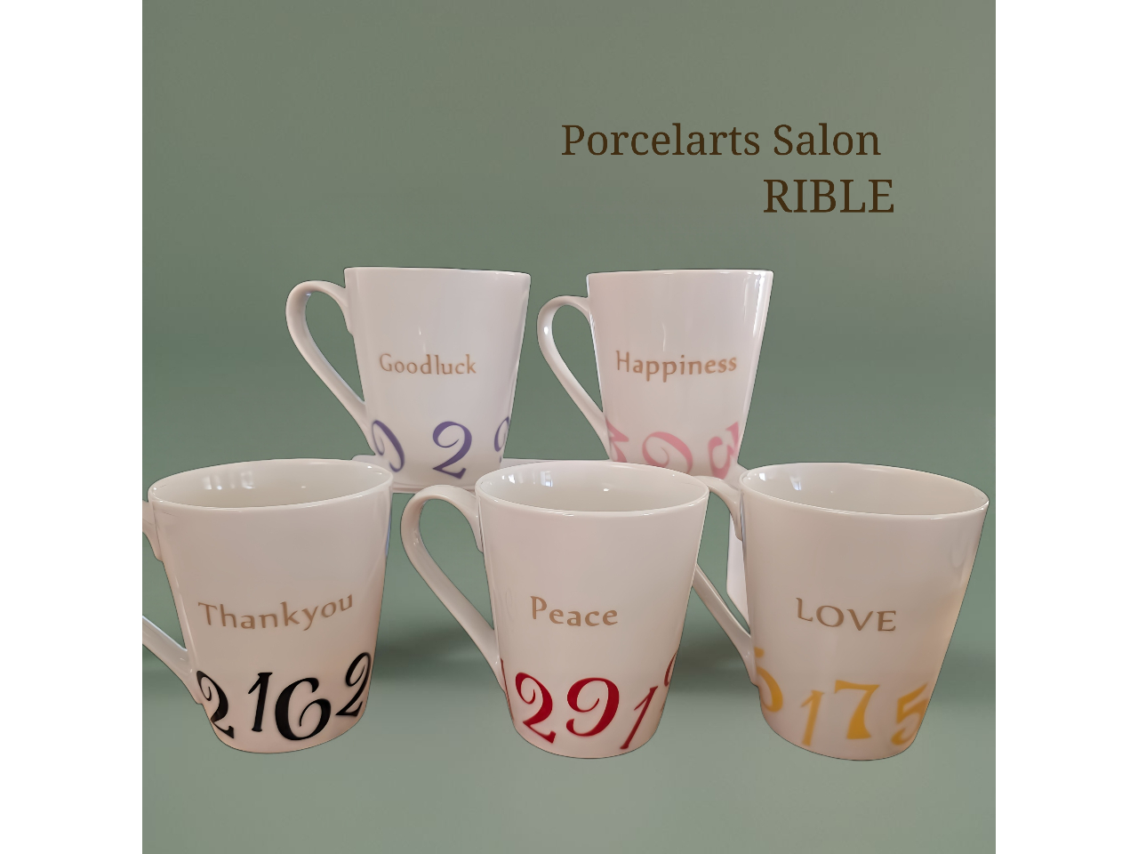 真っ白なマグカップに好きなカラーを選び、好きな数字を自由に配置してオリジナルマグカップを作ります。