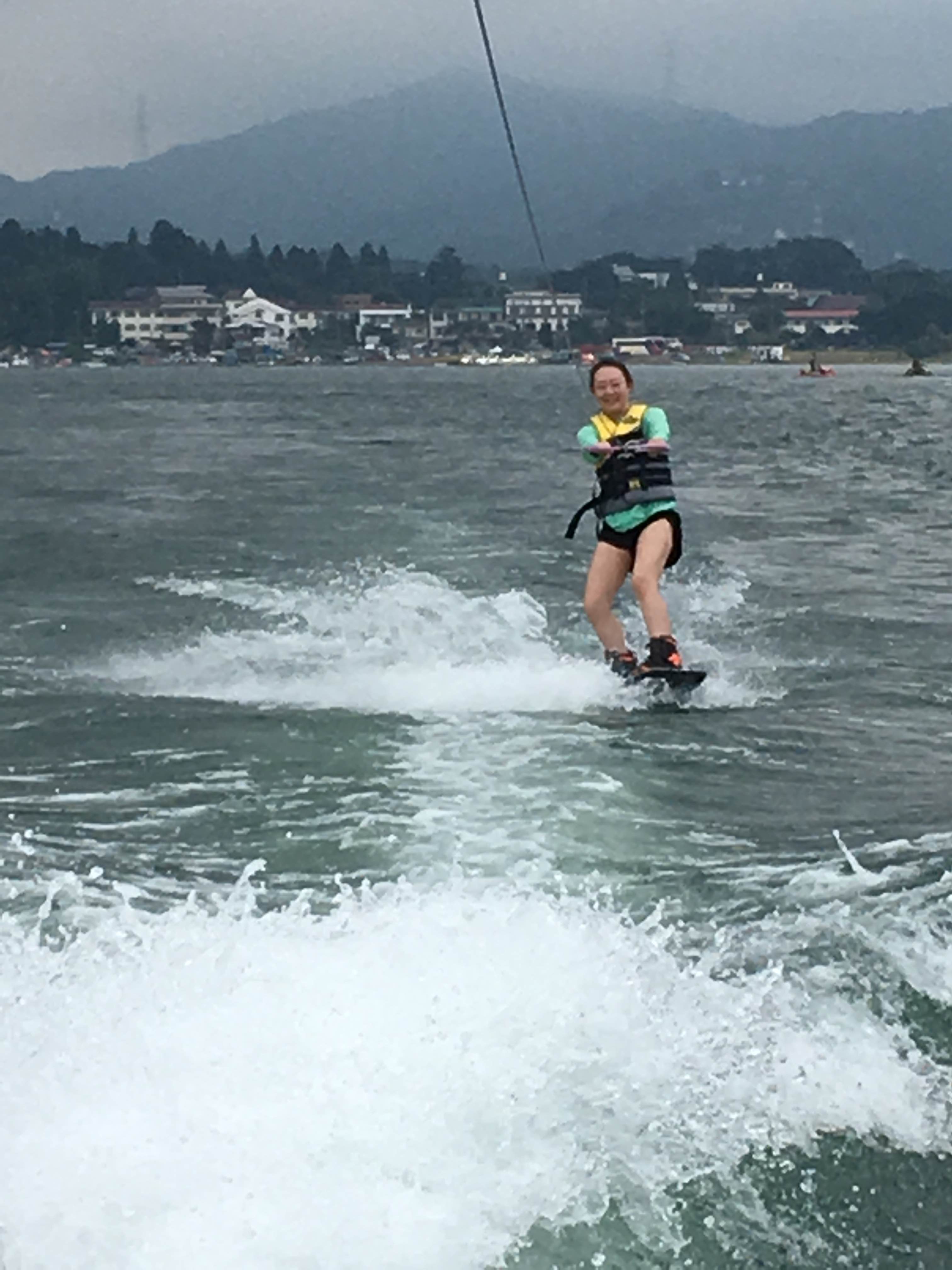 ウェイクボードとは、簡単に説明すると、水上版スノーボードといったところです。