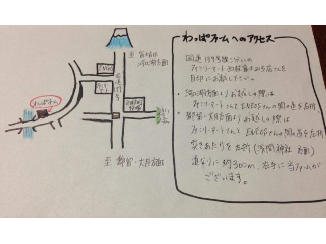 | 集合場所 | 〒403-0022 山梨県南都留郡西桂町小沼池の頭2869 わっぱファーム |