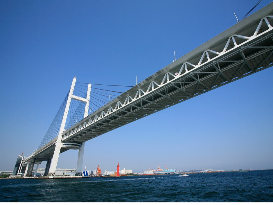 横浜ベイブリッジも真下から仰ぎ見るようにご覧いただけます。