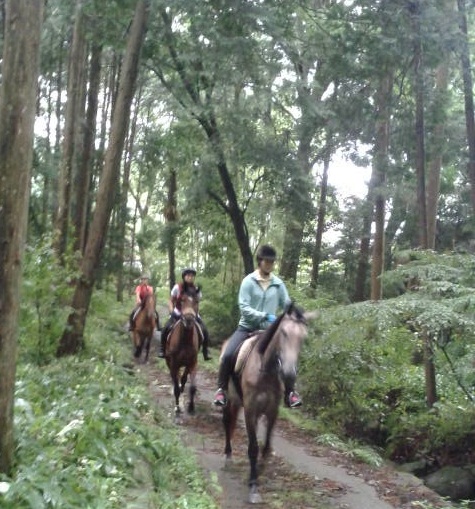 定員は、1組4名様まです。5名様以上の場合は、ご相談下さい。初心者、乗馬ブランクのある方は、1鞍約40分間(レクチャー10分、騎乗レッスン30分)場内で騎乗馬に慣れる、外乗に備えて基本動作の確認するなどをします。休憩後外乗距離4.7q,約1時間10分の林道外乗にでます。場内での乗馬技術の習得状況によりスタッフの騎乗ガイドまたは、徒歩ガイドを判断させていただきます。外乗は不安な方は、スタッフが歩いて一緒に付き添いますので、安心して下さい。騎乗時間は、中間地点での休憩時間、並歩、速歩の頻度により多少変わりますが、外乗距離は周回コースですので変わりません。森林内から田園地帯へ農家の点在する道路から沢沿いの道を歩いていきます。四季折々の変化もあり、森林浴や農村風景を楽しめるコースになっています。馬上で非日常的な経験をお楽しみ下さい。騎乗後は、ログハウス内で飲み物のサービスがあります。開催日対象外(空きなし)の日程でも開催する場合もありますのでお問い合わせ下さい。