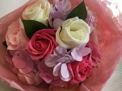 こちらのお店はハーバリウムの体験をする方が多いようですが、今回は石鹸でできた花を花束にする体験をしてきました。