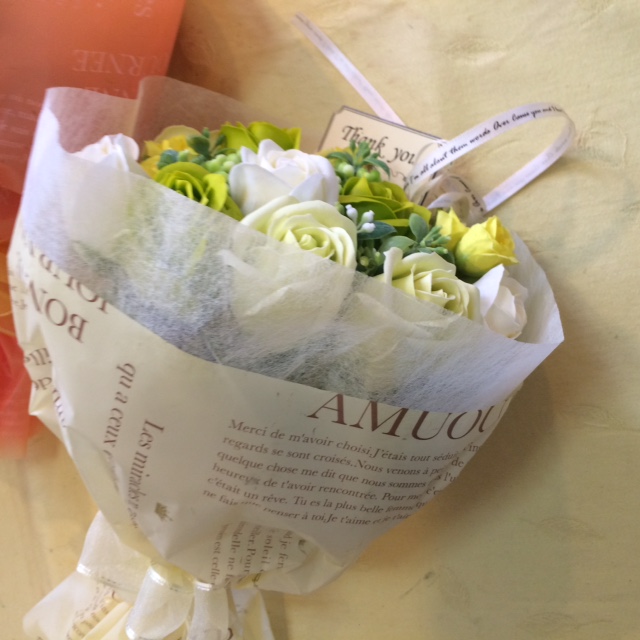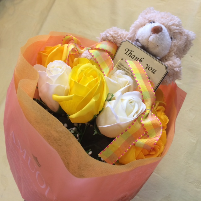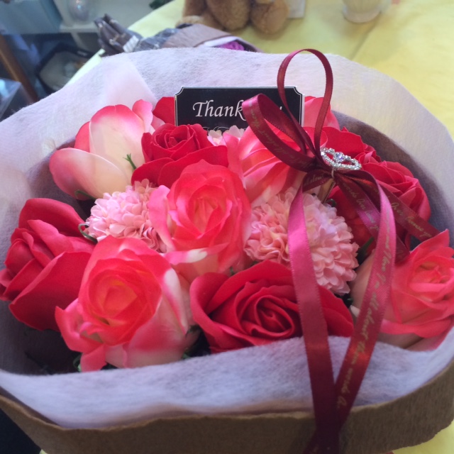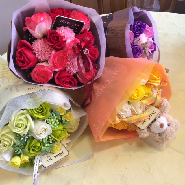 プレゼントに最適♪香り付きの石けんを使用したフラワーアレンジメント★本物の花束のように作れる♪