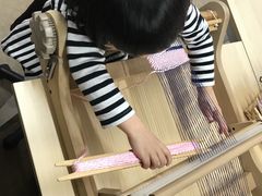 手を使って機織り器を使いながら、糸を通していきますが、簡単な割にコツをマスターするとキレイに手早く織ることができるようで、3人の子供の中でもやはり一番上のお姉ちゃん(中学生)が上手にできていました。下の小学4年生の息子は苦戦していましたが、徐々にコツをつかんだようで、後半は一人で手早くできるようになっていた。保育園年長の息子はママと一緒にやっていたが、最後はほぼ一人でできました。スタッフの方もとても丁寧に教えてくれるので、小さな子でも全然できると思います。コースターもとてもキレイで、実用的に使えるし、飾ってもよいくらいのものです。