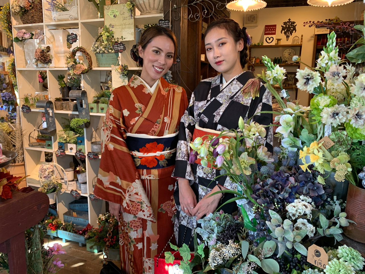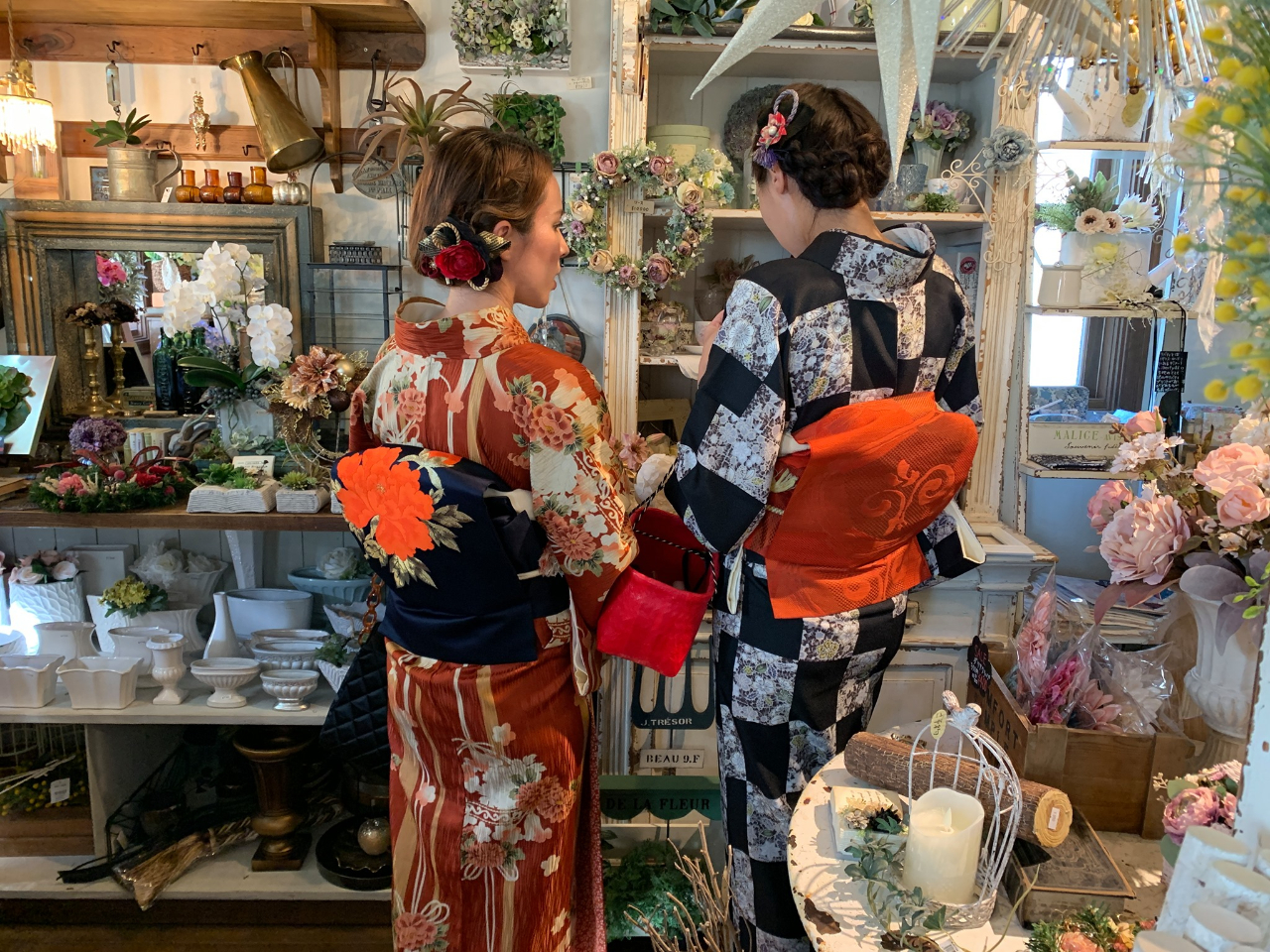 おしゃれなフラワーショップでお花に囲まれたお着物姿のお写真をたくさん撮れる特別企画です♪
