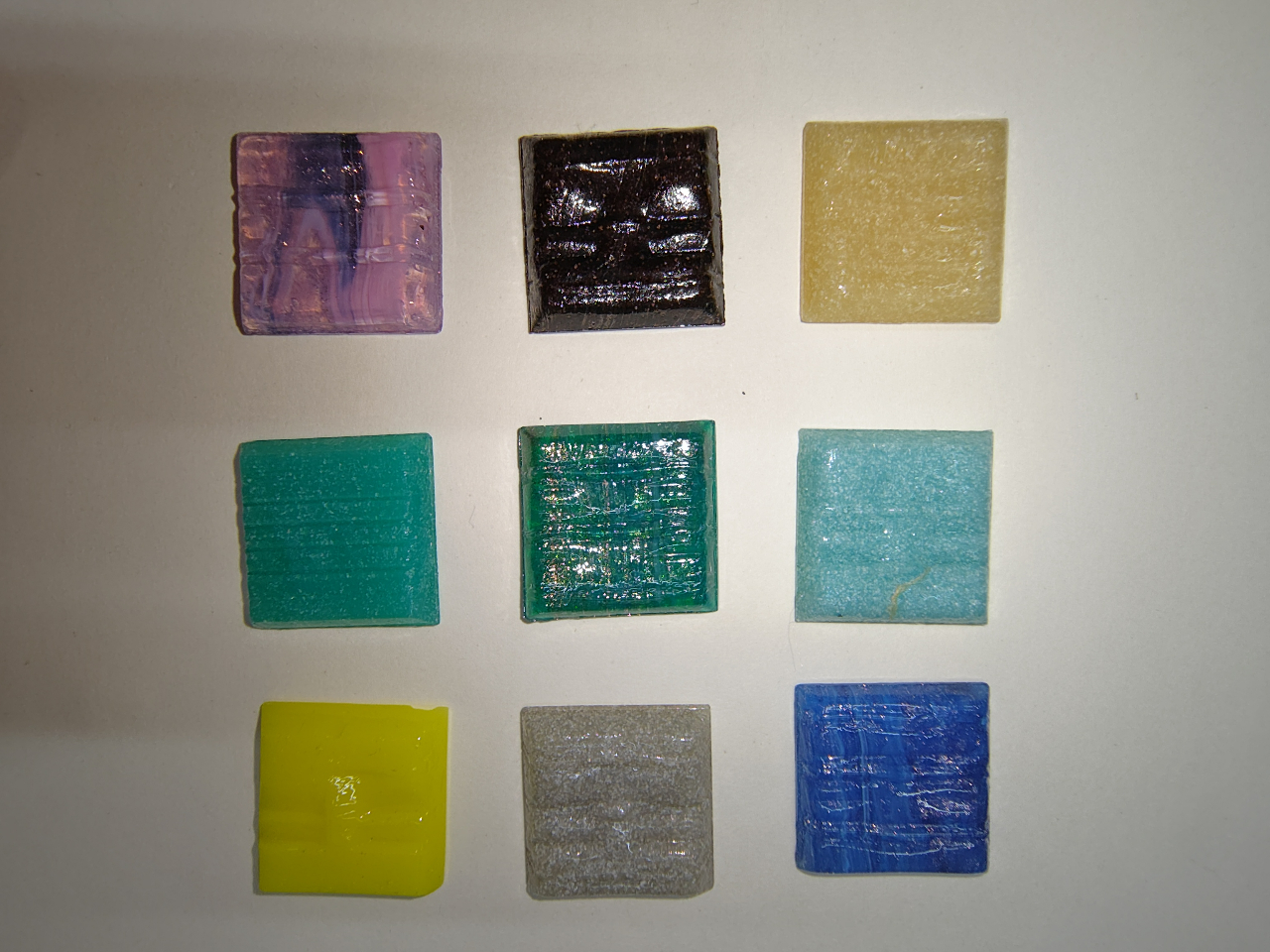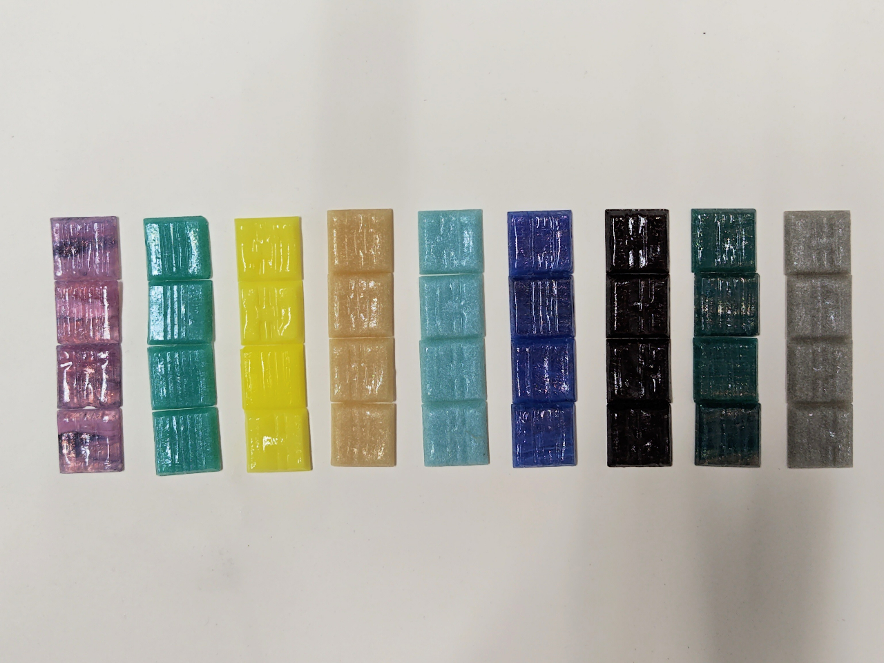 1.色とりどりのガラスパーツを選び、デザインを決定