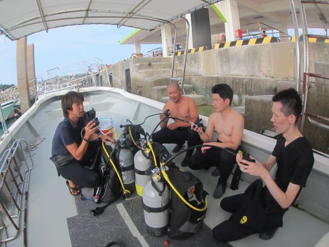 ボートダイビングは青の洞窟付近まで船で行き、器材を着けたらすぐに海に入れるのでとってもラクです!