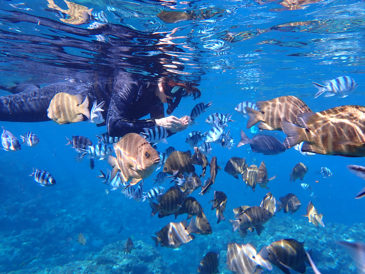 ◎青の洞窟シュノーケルはボートでご案内、餌付け、写真代無料です!