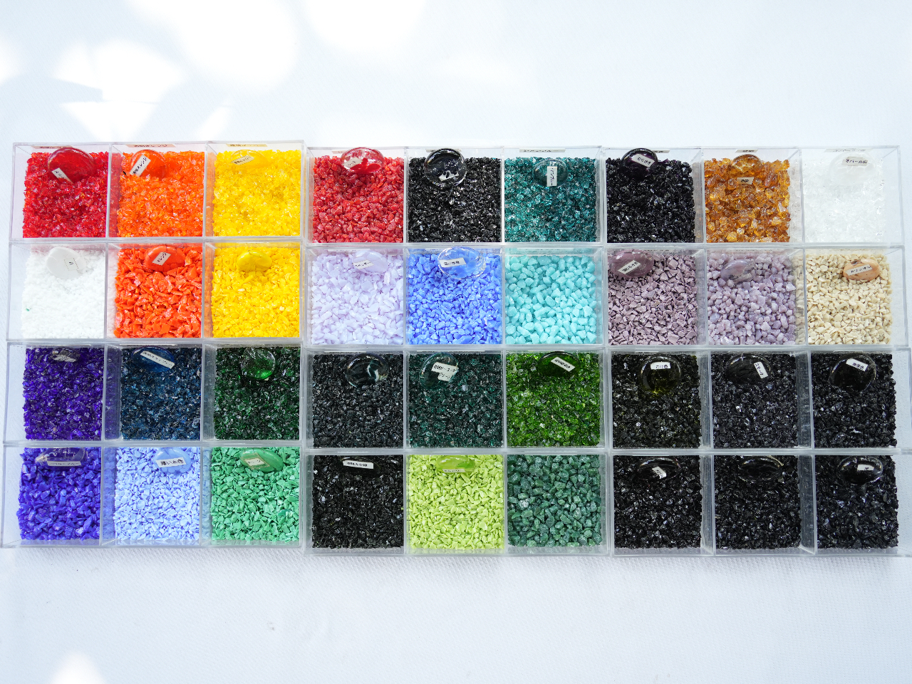 ◎36色のガラスのチップが使えます。ガラス細工作り